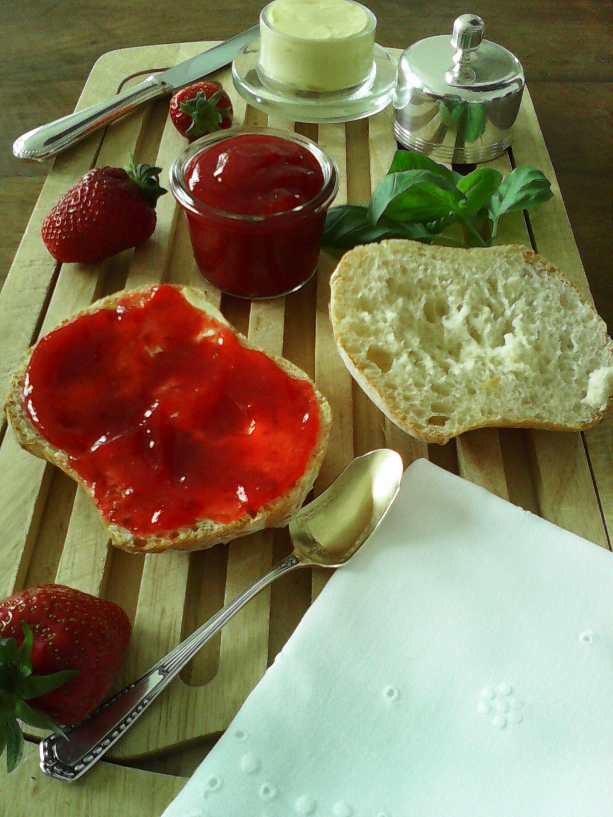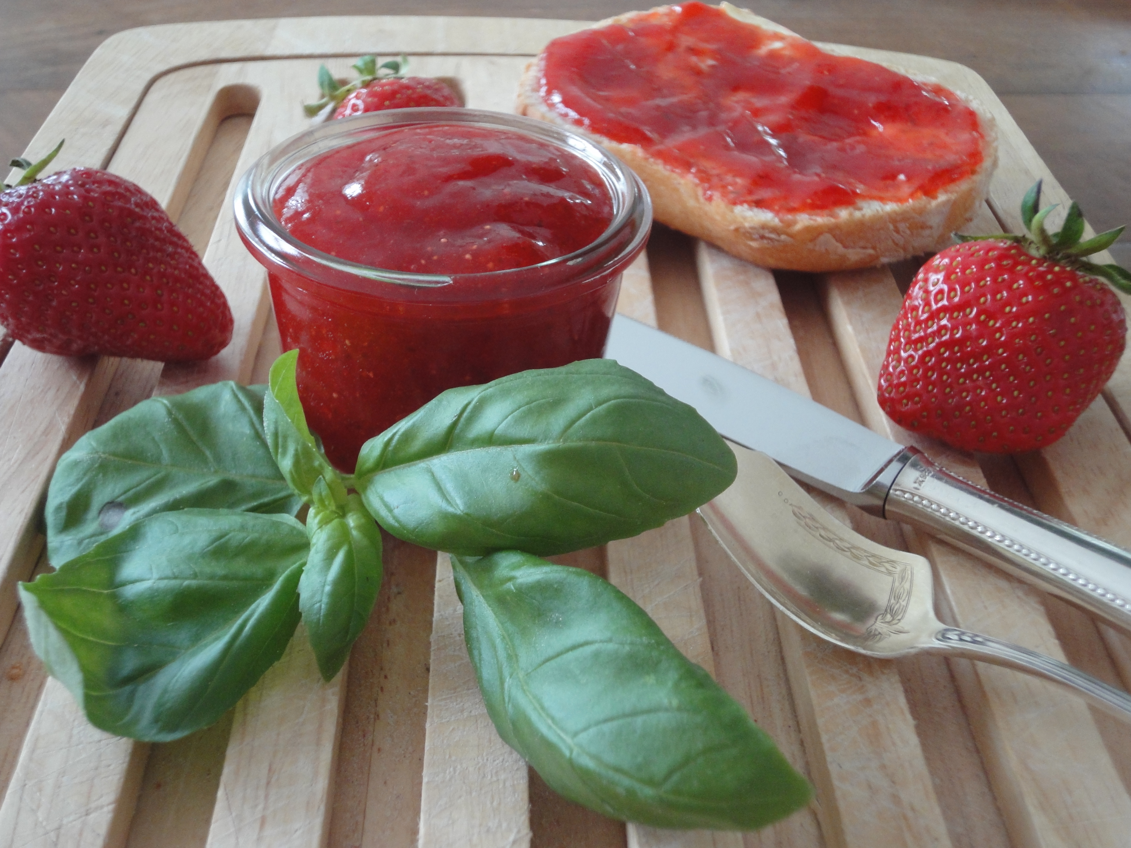 Zum Auftakt der Einmach- Saison startete ich heute mit der Erdbeere, welche ja gerade Hochsaison hat. Und weil ich ja gerne “ Neues“ ausprobiere habe ich einfach mal etwas Basilikum dazugegeben.