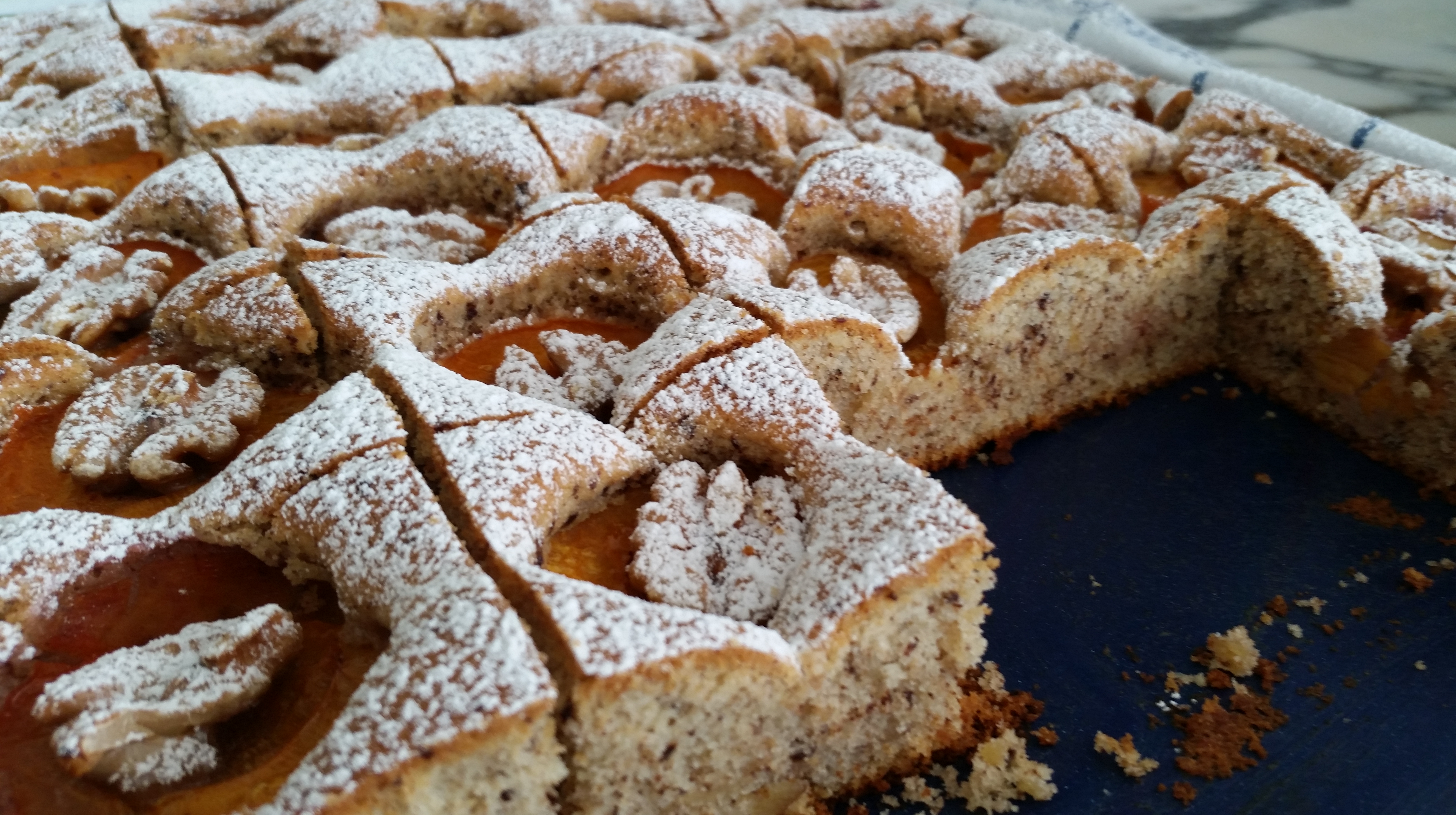 Noch ein Aprikosenkuchen der ganz besonderen Art, mit Walnüssen obenauf und Schokostücken im Teig. Ein Kuchen für die Tage wenn es mal schnell gehen muss. Deswegen auch ganz schnell die Zutatenliste und die Zubereitung dafür 🙂