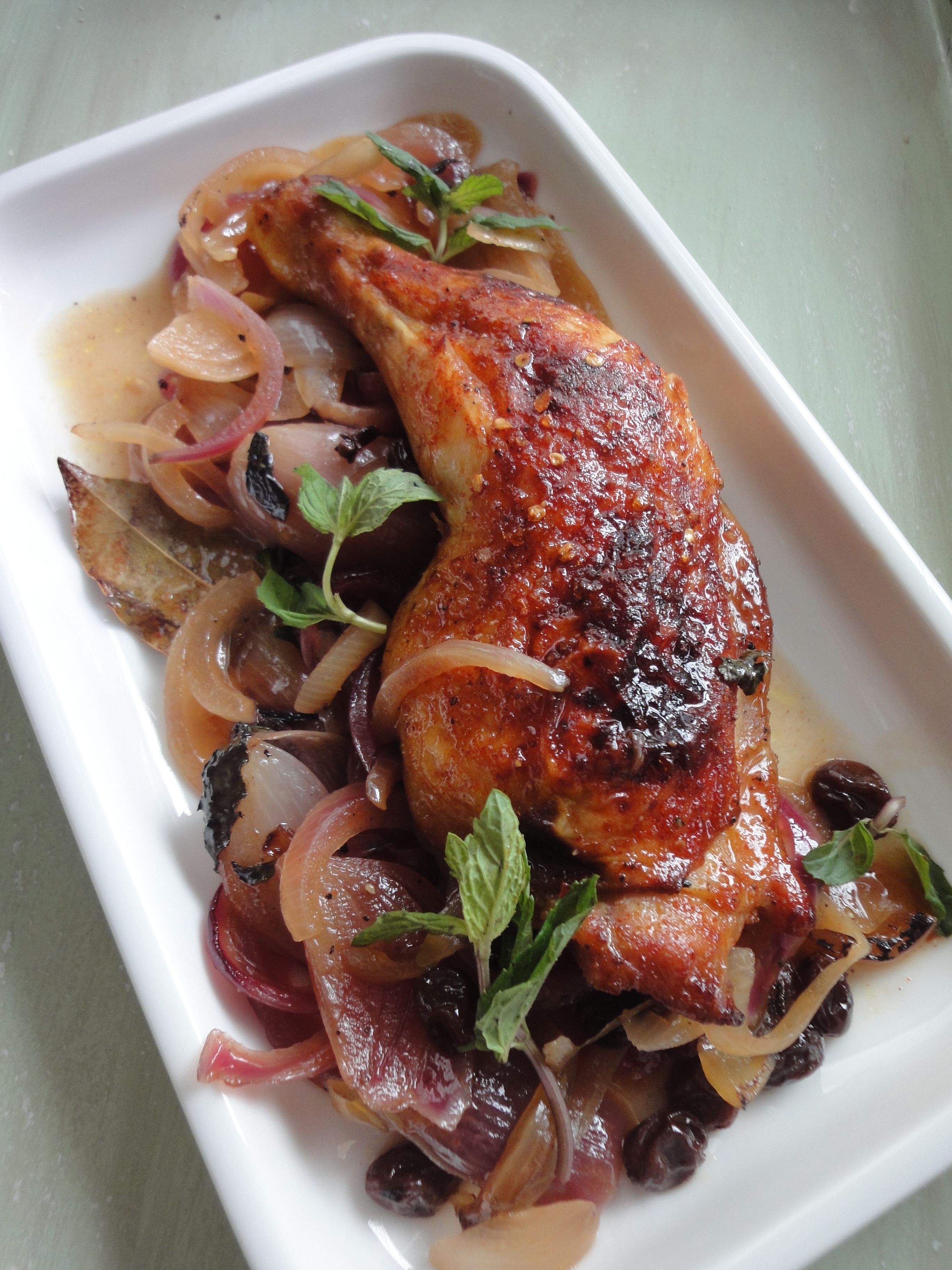 Gewürzte Hähnchenkeulen bepinselt mit Honig….wie lecker ist dass denn! Wahnsinnig gut und durch den rosenscharfen Paprika ganz schön pfiffig! Aus wenigen Zutaten wie Zwiebeln, Rosinen und verschiedenen Gewürzen wird in kürzester Zeit was ganz besonderes. Das war ein schnelles Mittagessen für heute und lässt sich auch super gut vorbereiten und mal schnell in den Ofen schieben.