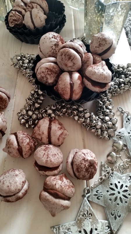 In meiner Weihnachtsbäckerei ….gibt es heute kleine Baisertropfen mit Espresso und einer Rum- Ganache