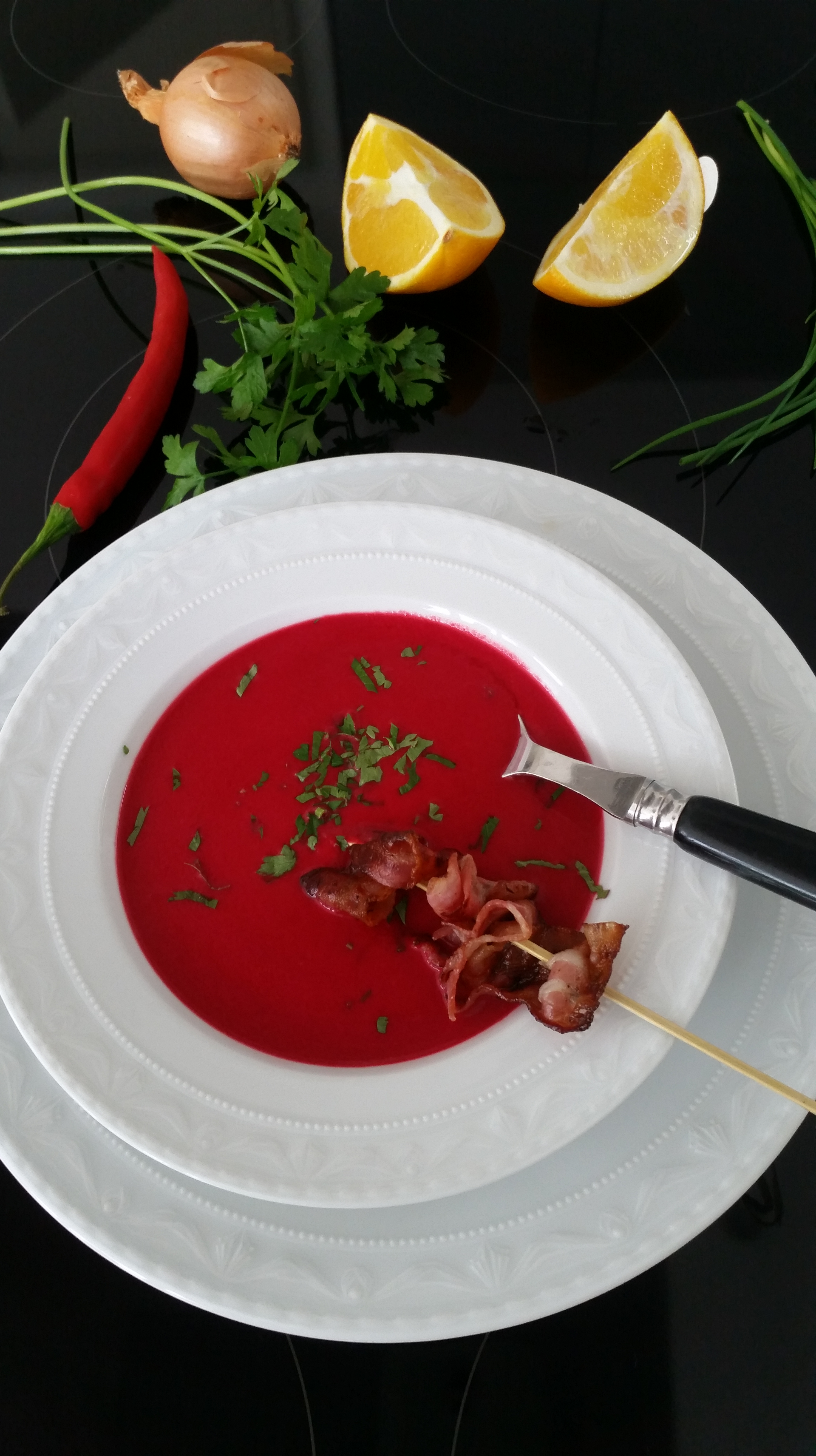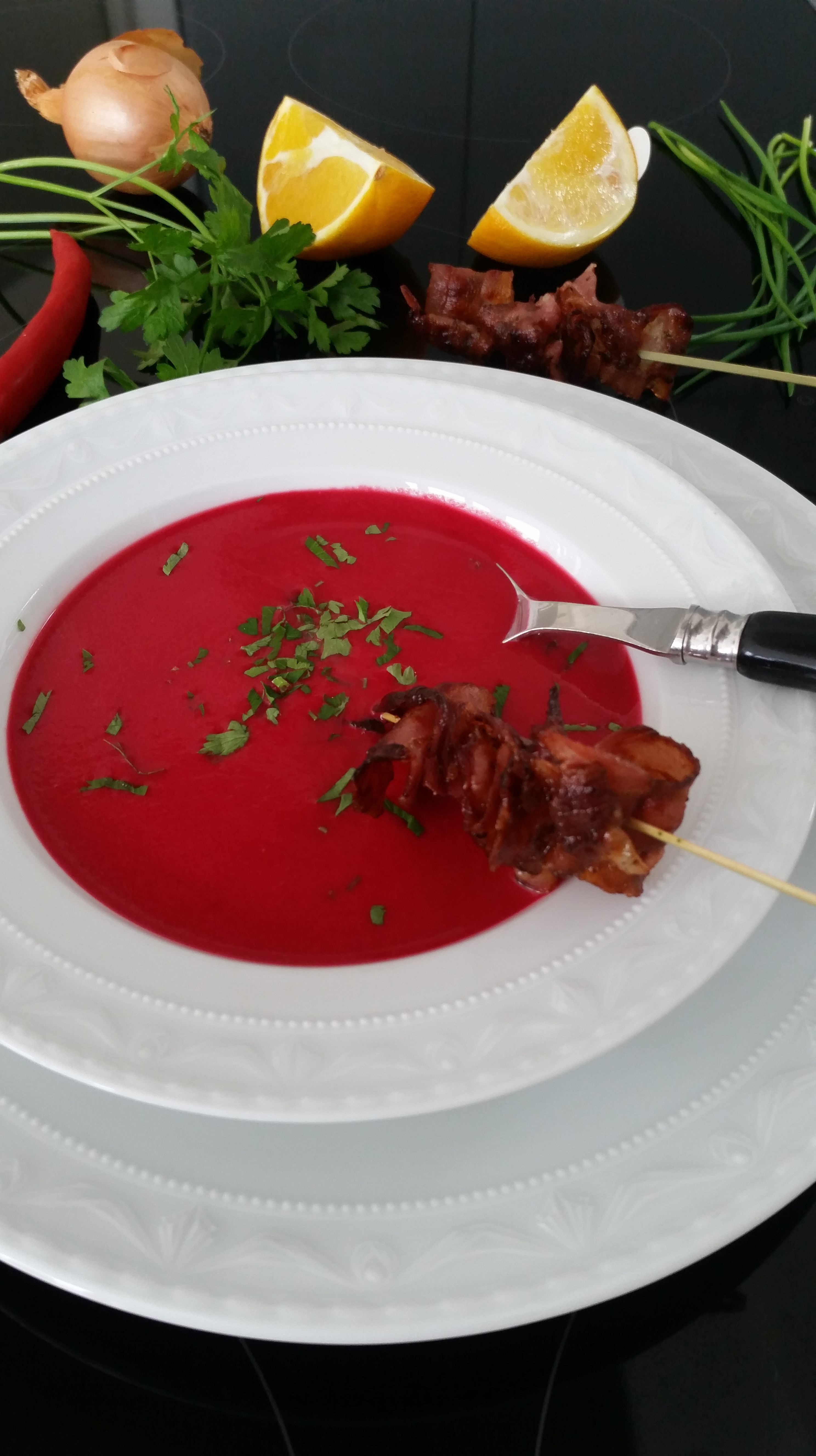 und dazu…als Unterstützung, sich selbst verwöhnen oder verwöhnen lassen! Was bietet sich da Besseres an, sich erst einmal als bekennende Suppen- Liebhaberin…ein köstliche Suppe zu gönnen, vielleicht hilft sie mir ja über mein momentanes Tief hinweg…