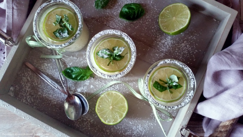 Die Gelatine in kaltem Wasser einweichen, Limetten heiß abwaschen und 1 EL Schale abreiben. Für die Creme die Eier trennen. Das Eiweiß kalt stellen. Eigelb mit dem Puderzucker und Wasser über dem heißen Wasserbad schaumig aufschlagen. Die Limettenschale unterheben. Die Limetten auspressen und den Saft erwärmen. Die ausgedrückte Gelatine darin auflösen und unter die Ei- Creme rühren. Die Creme kalt stellen. In der Zwischenzeit Basilikum abzupfen, einige Blätter beiseite legen, den Rest in sehr feine Streifen schneiden. Sobald die Creme zu gelieren beginnt, das Eiweiß zu steifen Schnee schlagen. Zuerst den Joghurt und die Basilikumstreifen, dann den Eischnee unterheben. Die Creme in Gläser füllen und 2 Stunden kalt stellen. Mit Limettenscheiben und Basilikumblättchen garnieren.